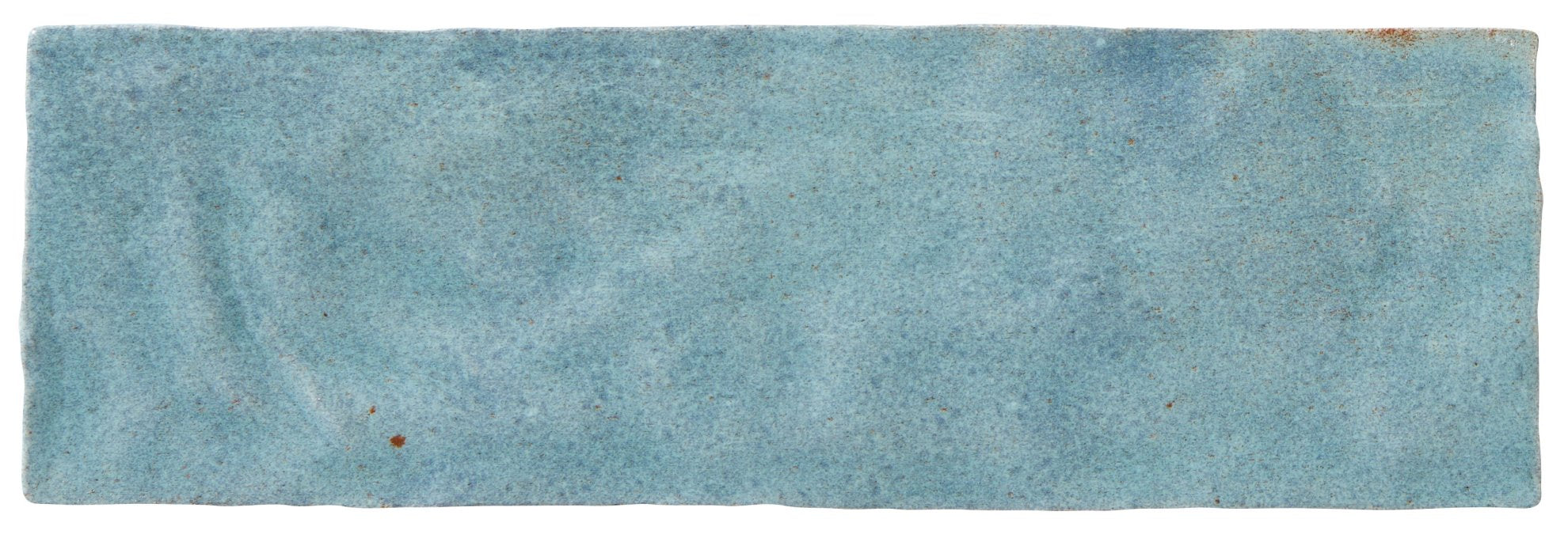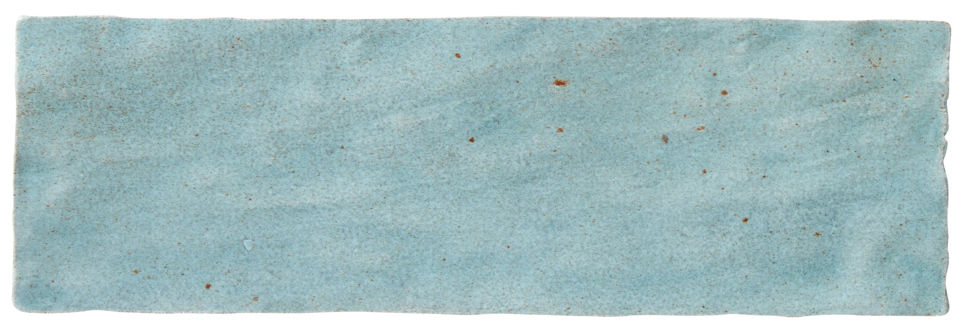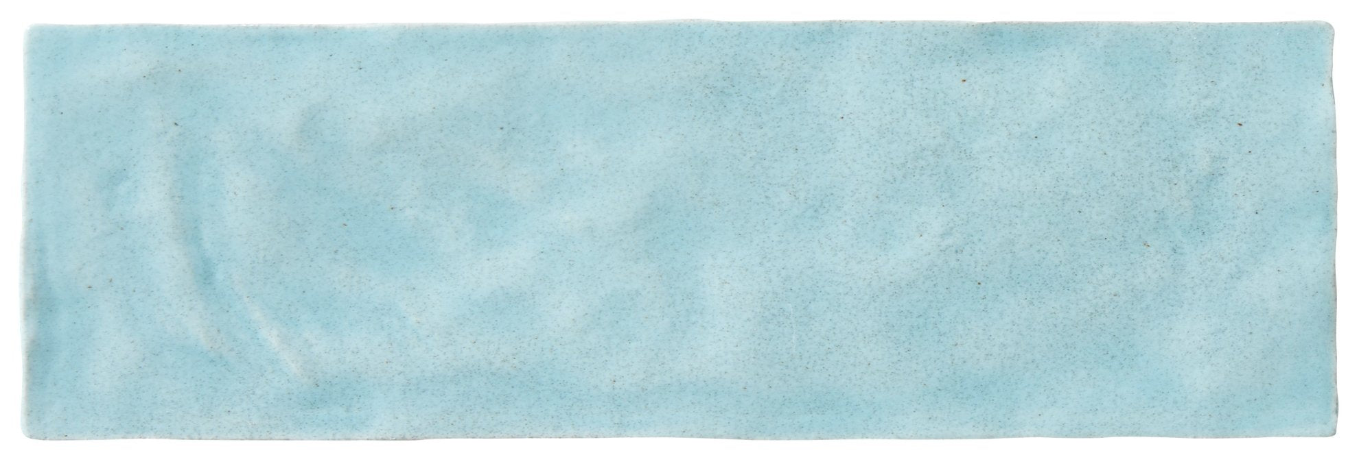 A gloss finish ceramic tile with aqua tones and a handcrafted Zellige‑style texture.