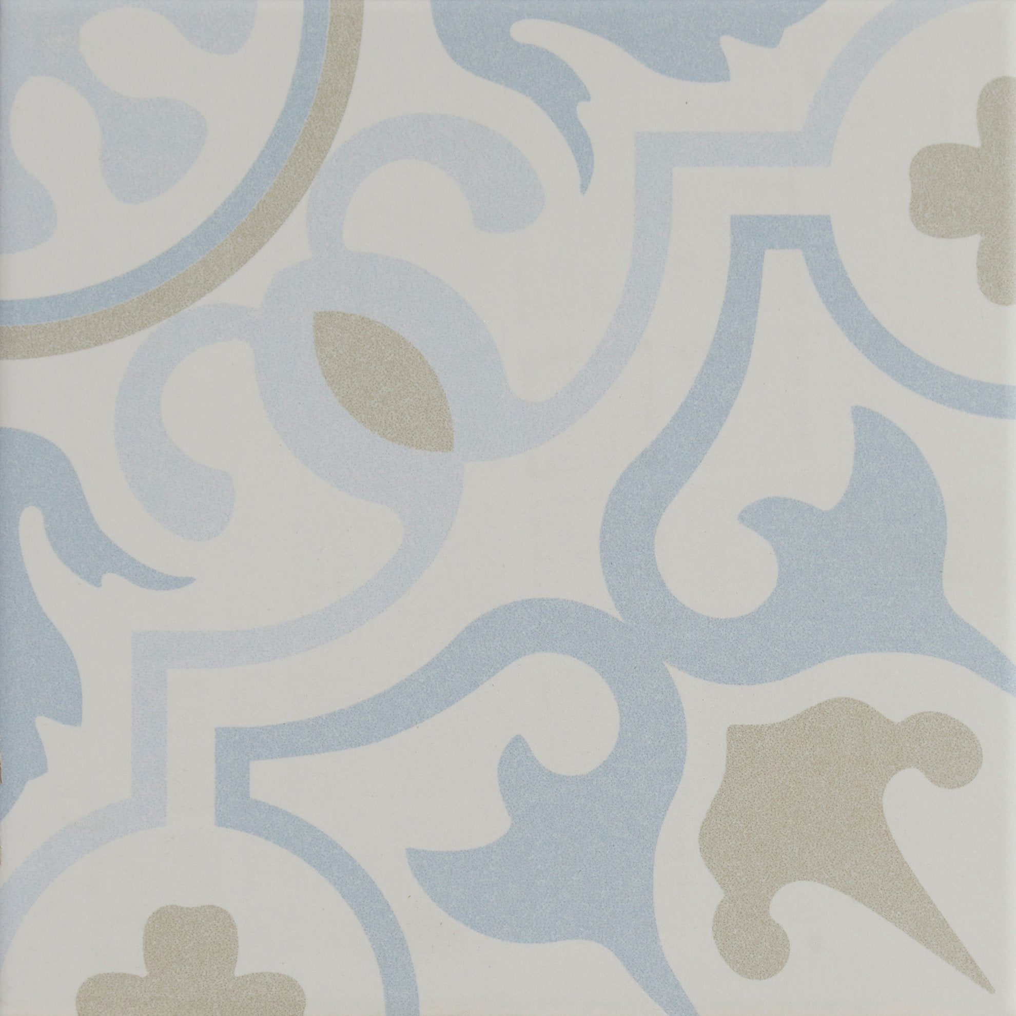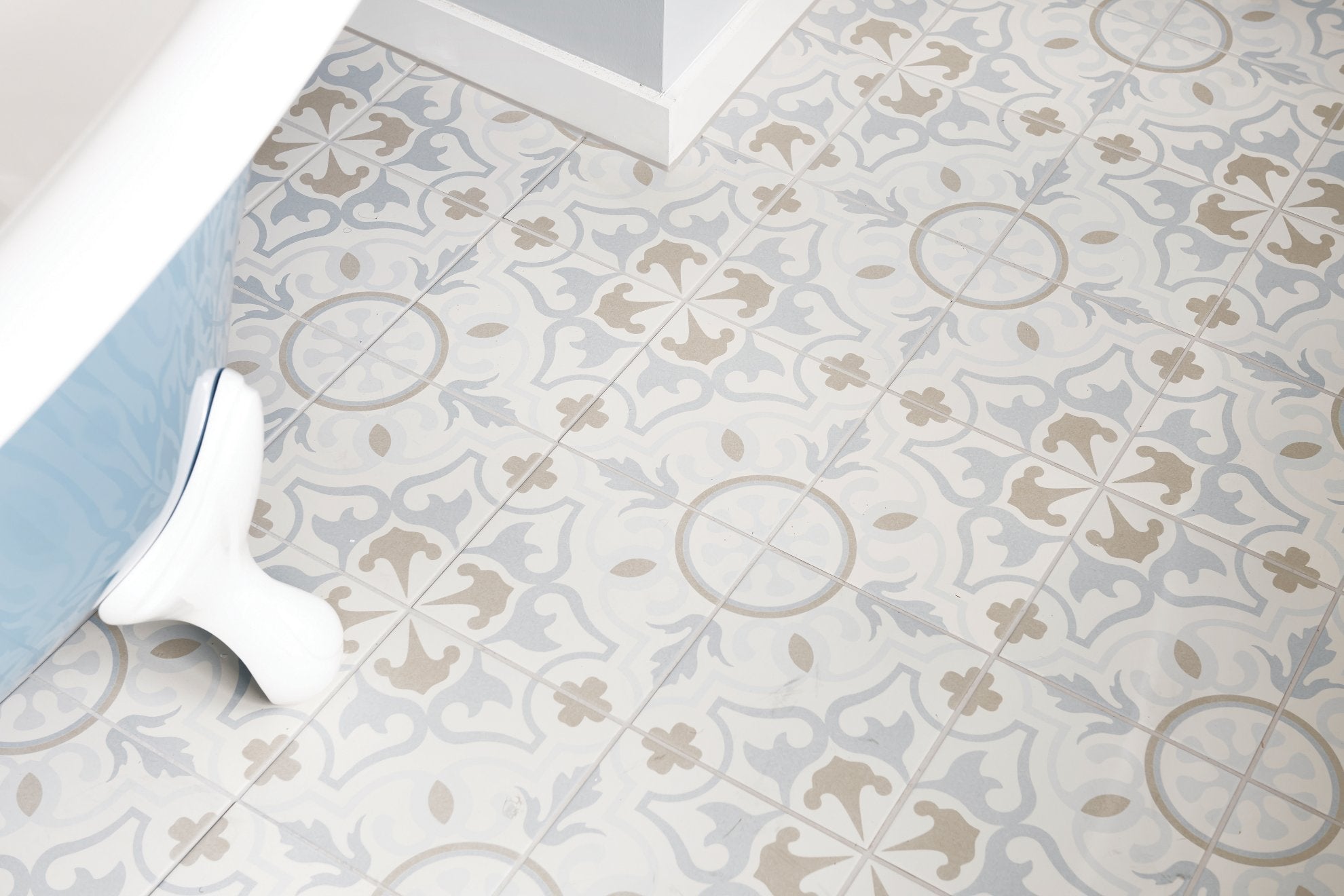 Porcelain tile with soft, pastel tones and a gently worn matt finish.