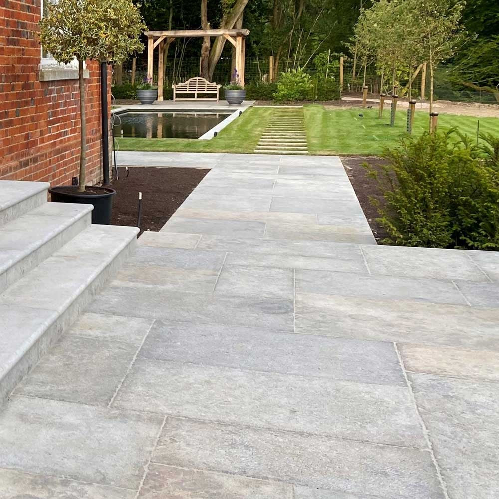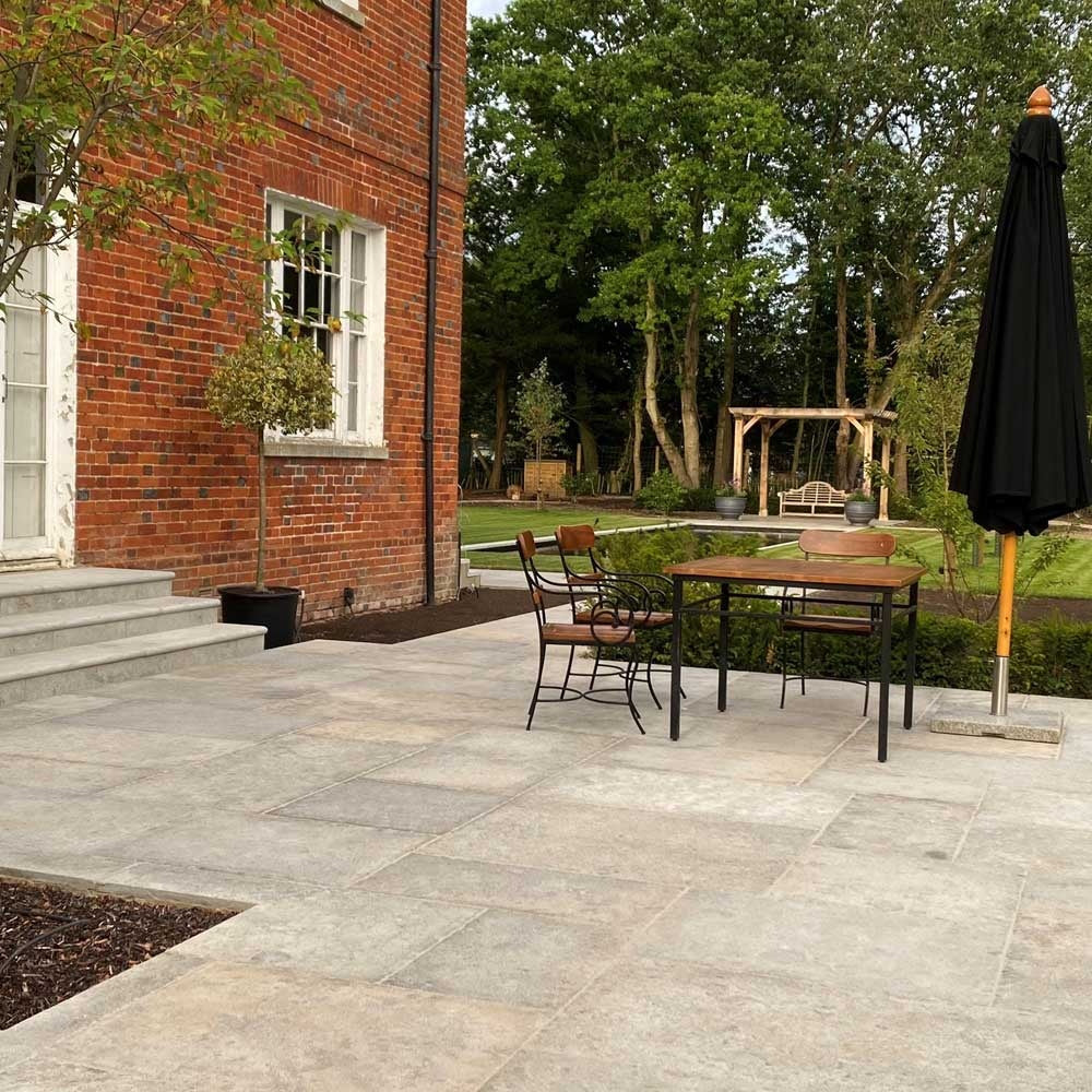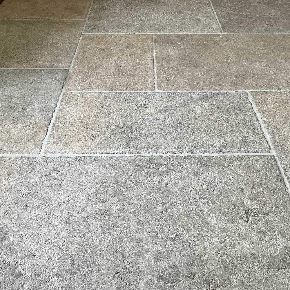 Grey limestone with a heavily authentic time‑worn texture, designed to replicate true reclaimed castle flagstones.