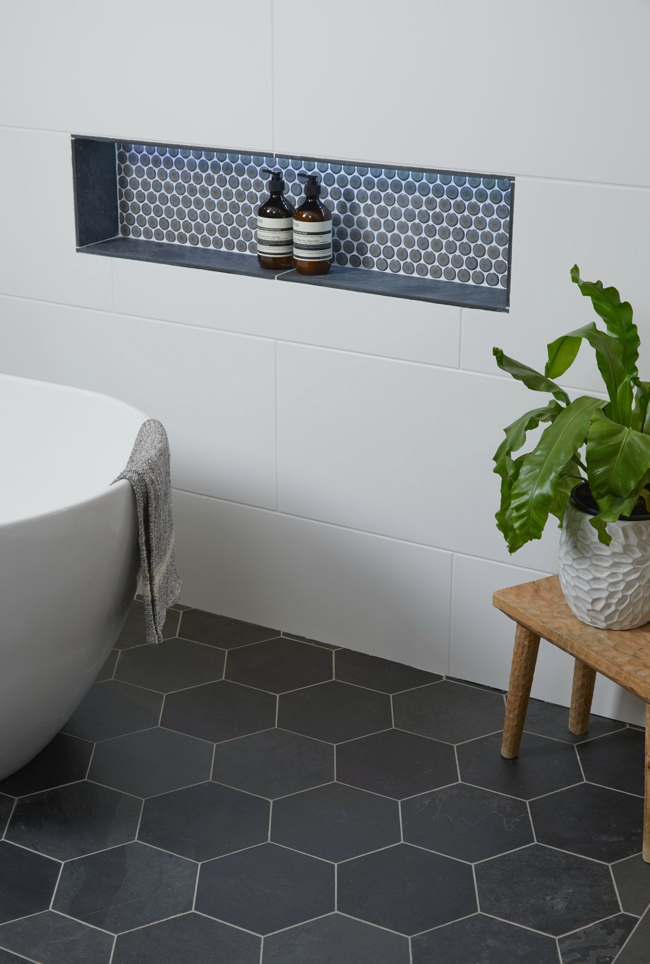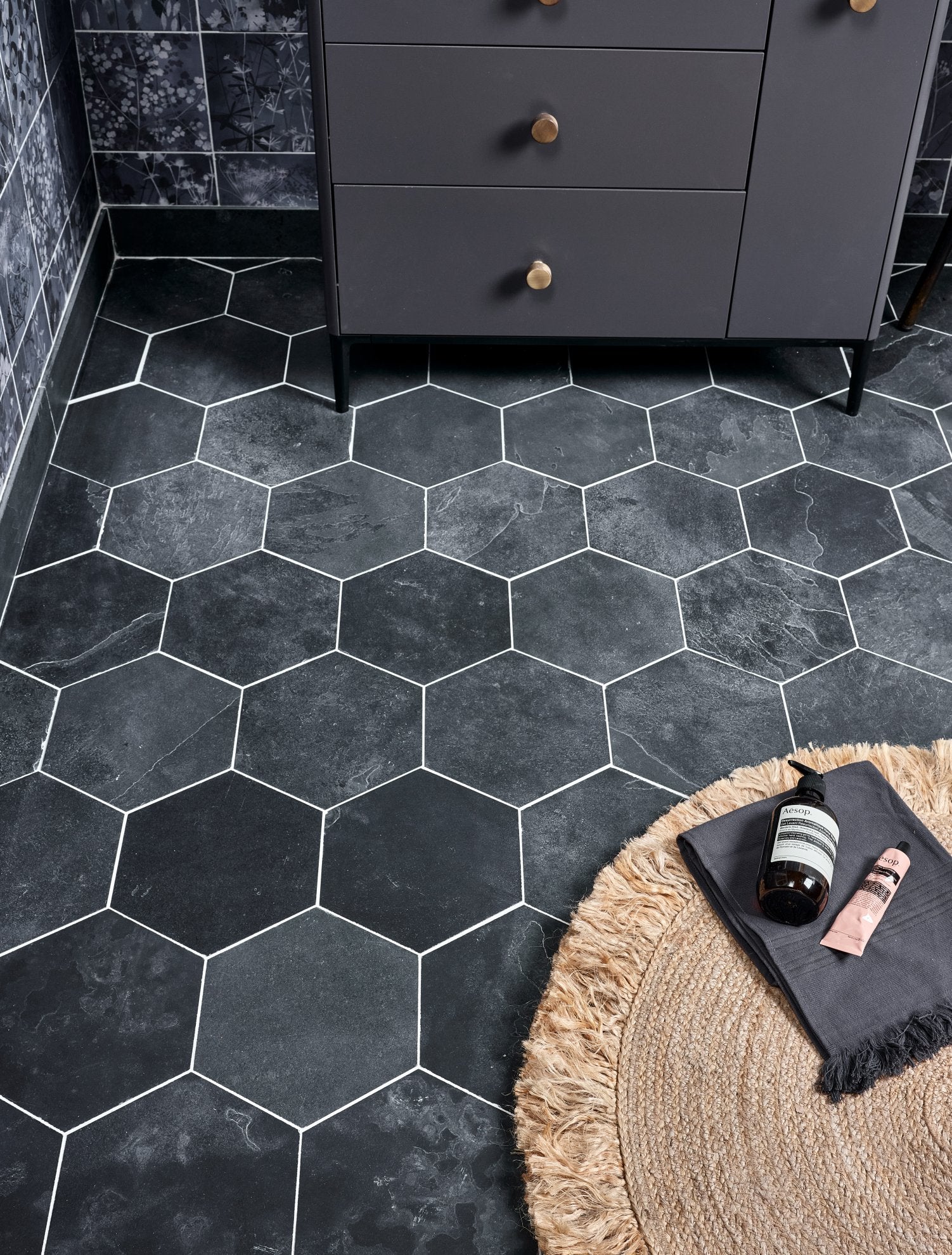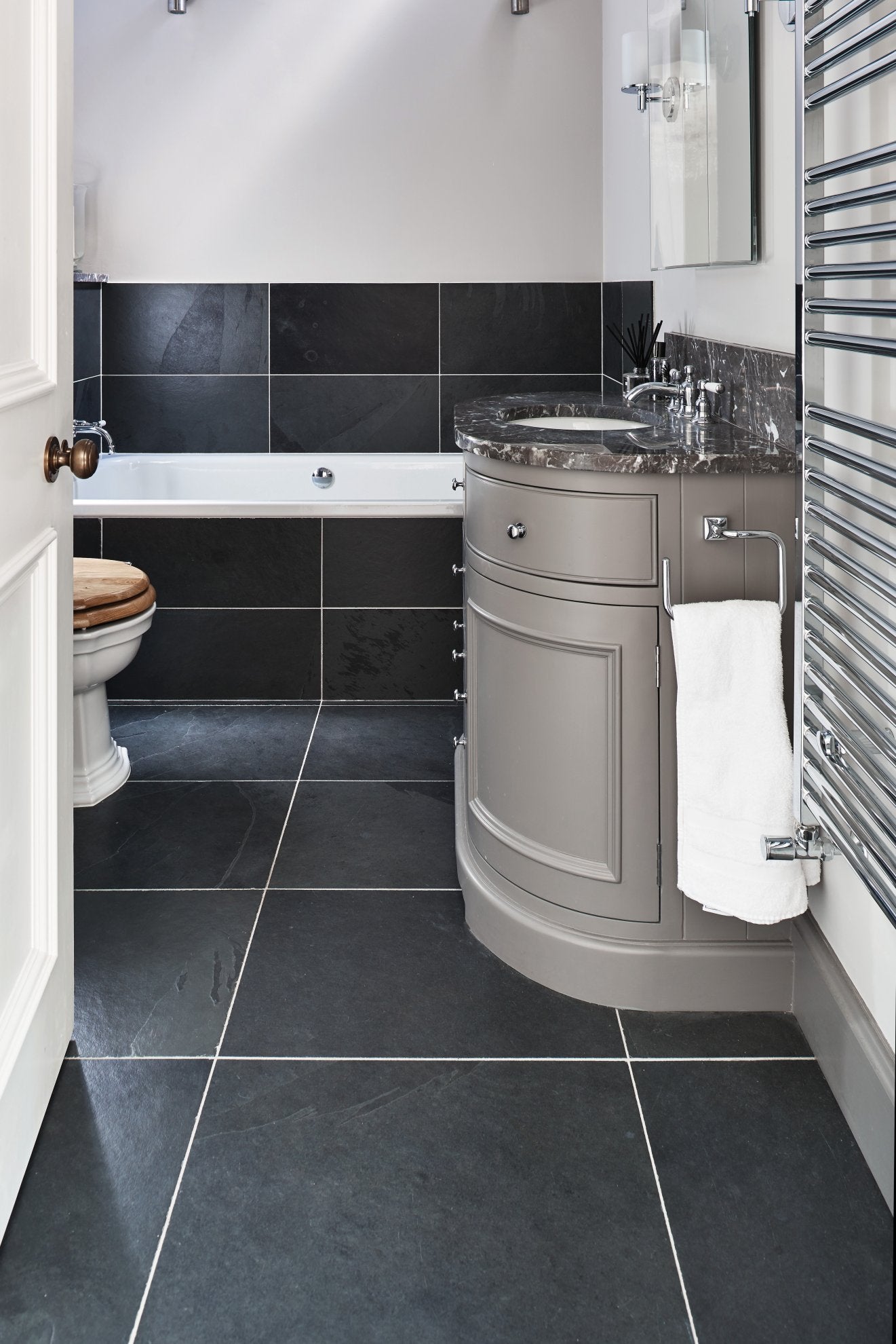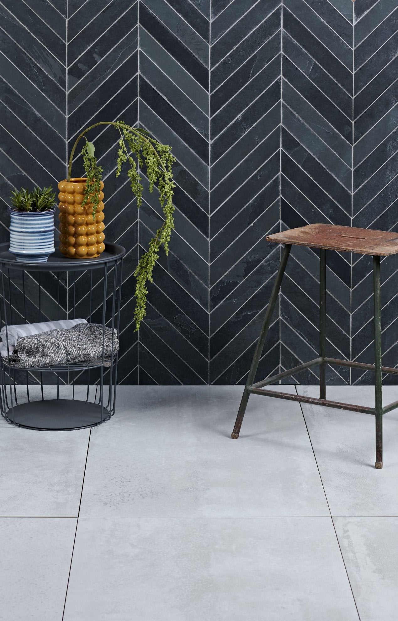 Dark grey slate with riven texture and natural tonal variation, providing a contemporary, urban-style finish for floors and walls.
